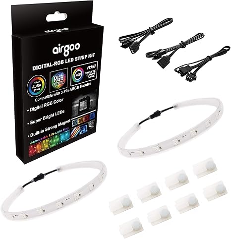 Amazon Com Addressable Rgb Pc Led Strip Airgoo Silicone Housing Ws2812b Rgbic Rainbow Argb Strip For 5v 3 Pin Asus Aura Sync Gigabyte Rgb Fusion Msi Mystic Light Sync Motherboard With Strong Magnetic Clips